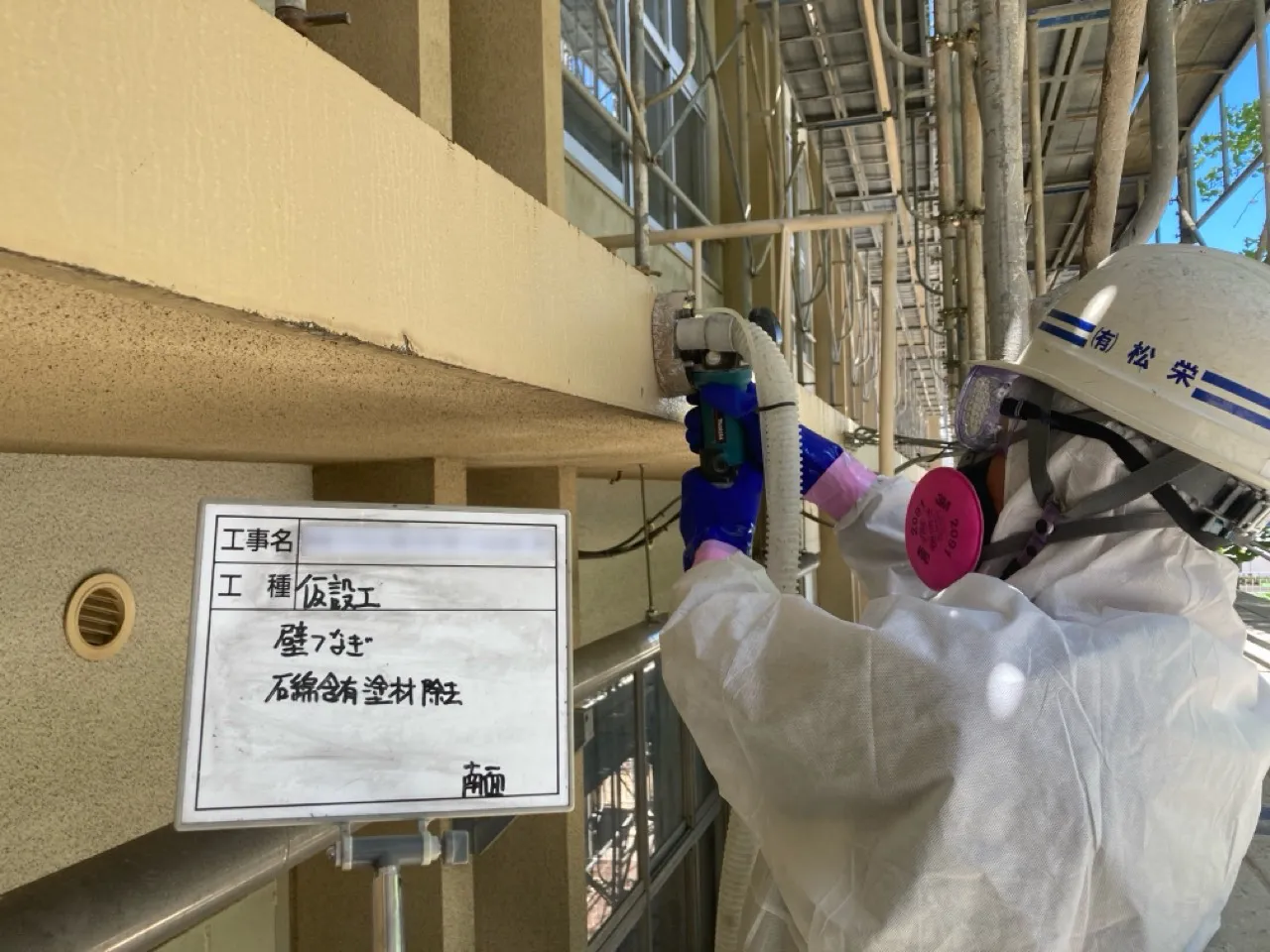 高松市内の学校外壁改修工事にて、足場工事とアスベスト除去工事を請け負わせていただきました。アスベスト除去は、湿式グラインダー工法で施工しました❗️学校ということもあり、生徒もいる中での作業なので普段以上に安全に考慮して作業を行いました🙆 暑い時期での作業でしたが、無事完工しました。お疲れ様でした!
