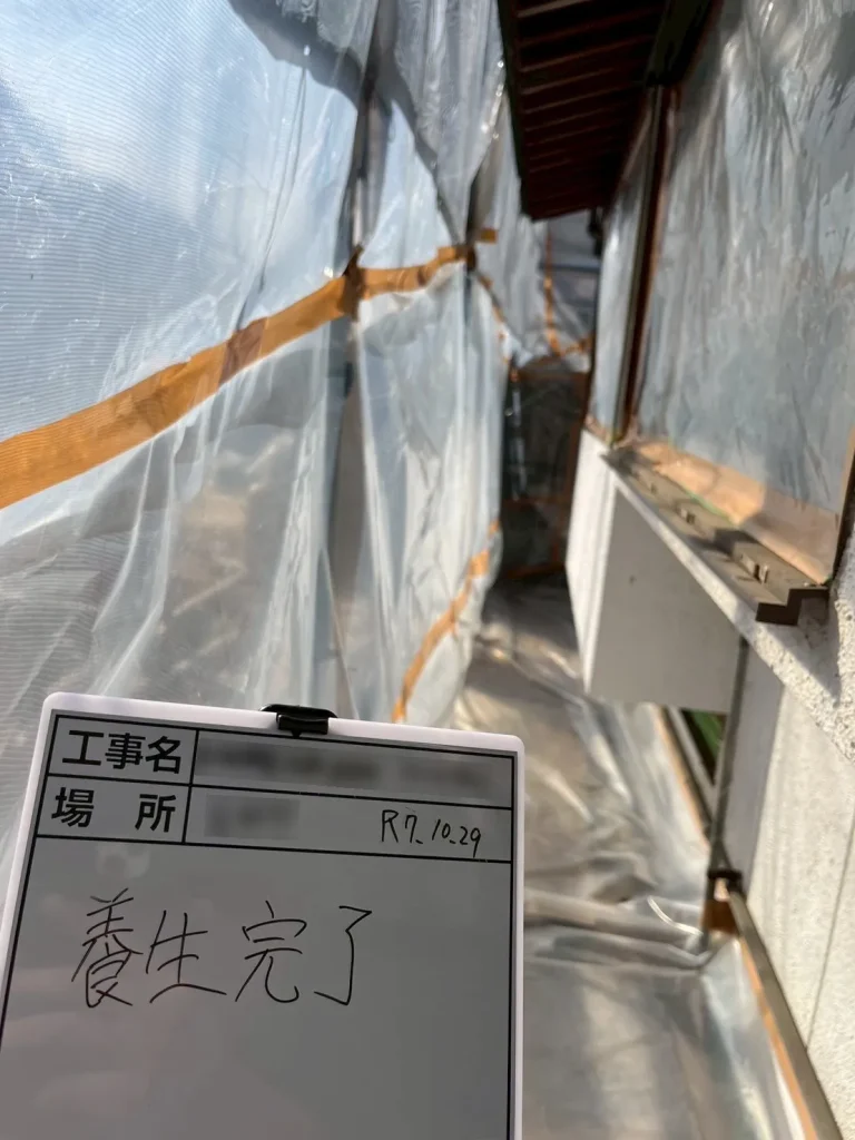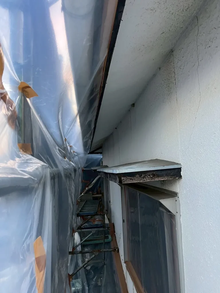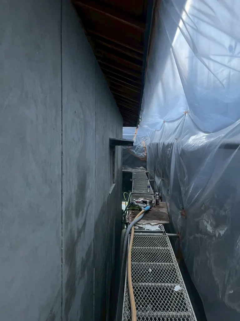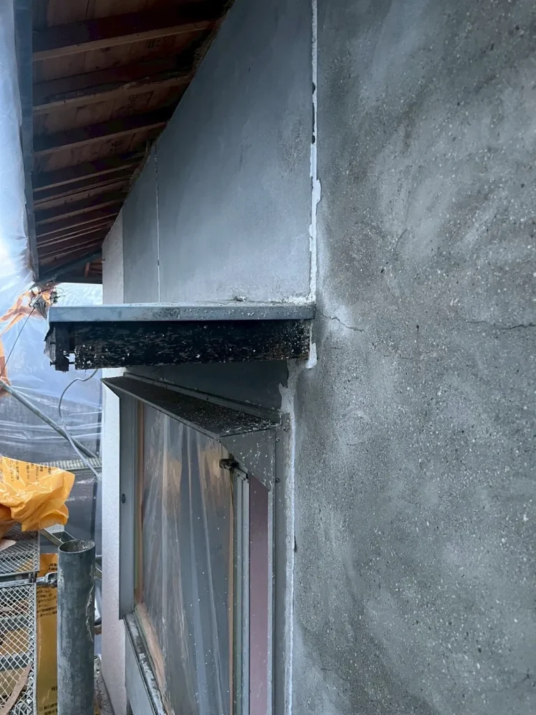 高松市の店舗住宅解体工事にて、外壁アスベスト除去工事を湿式グラインダー工法で行いました。